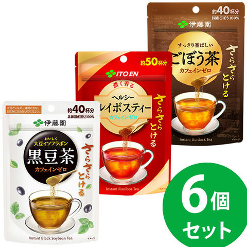 伊藤園 さらさらとける おいしく大豆イソフラボン黒豆茶/濃く香るヘルシールイボスティー/すっきり香ばしいごぼう茶 6個セット カフェインゼロ