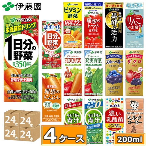 伊藤園 野菜ジュース 選べる 紙パック200ml 24本入×4ケース (合計96本) (送料)1日分の野菜 トマトジュース ザクロ 黒酢 青汁