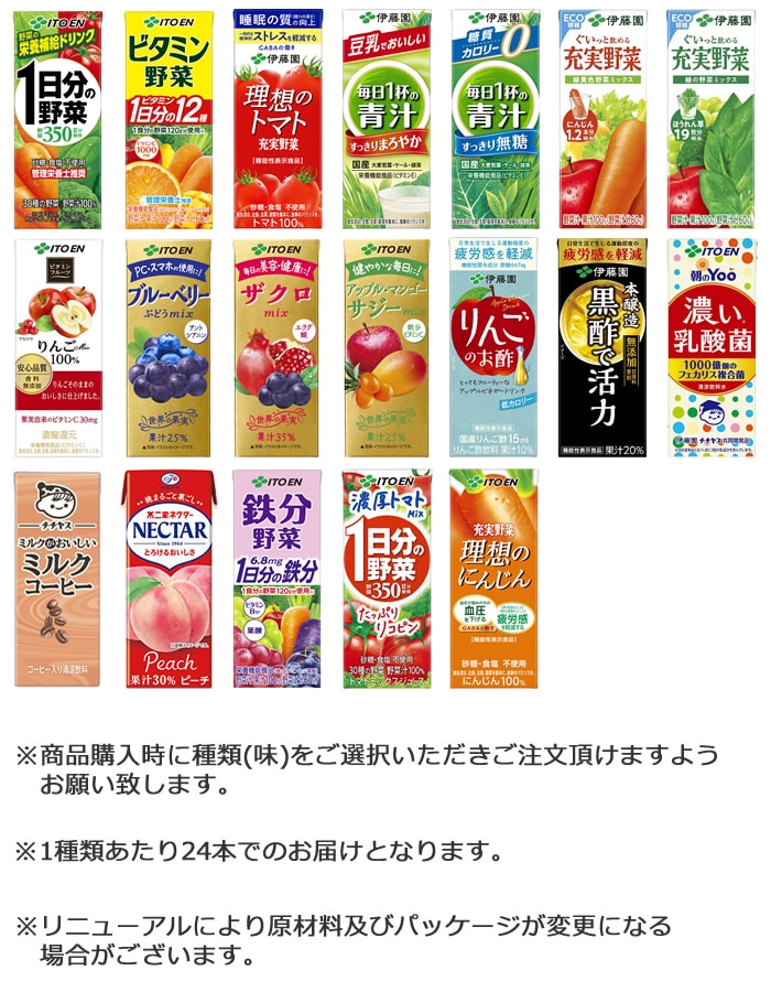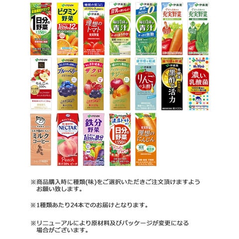伊藤園 野菜ジュースなど 選べる 紙パック200ml 24本入 紙パック 野菜ジュース 一日分の野菜 1日分の野菜 トマト ブルーベリー ザクロ 柘榴 青汁