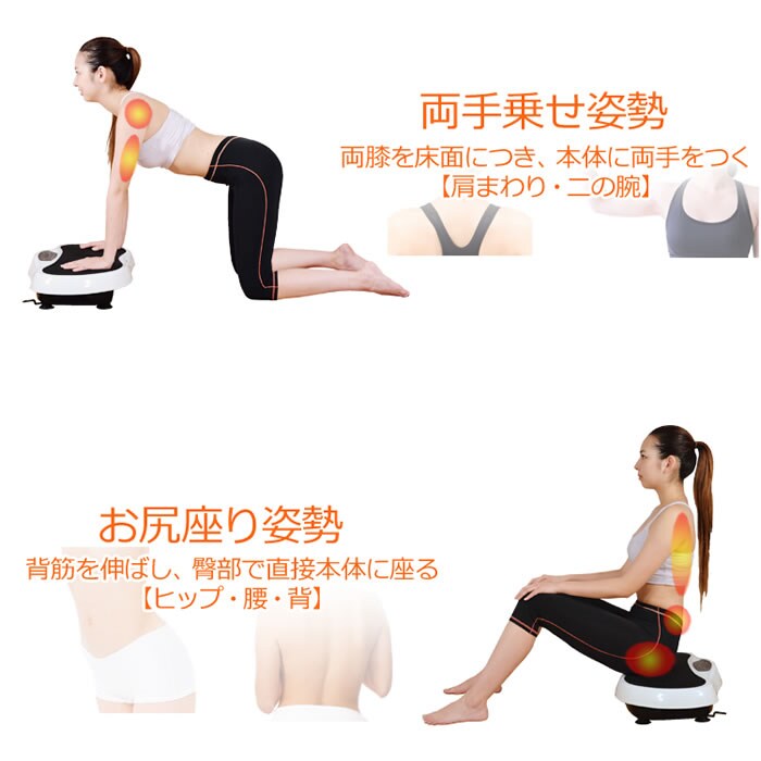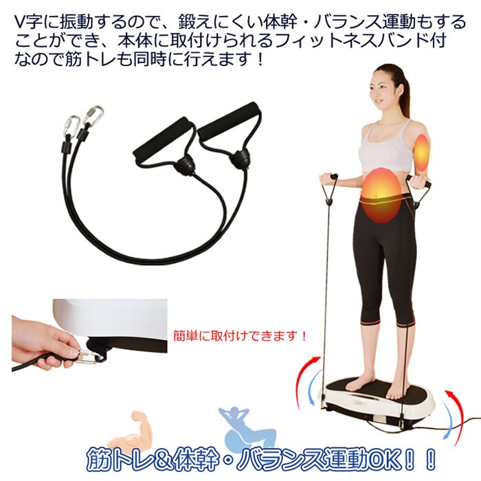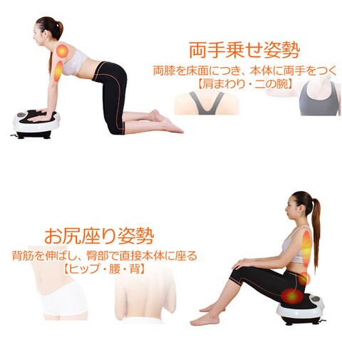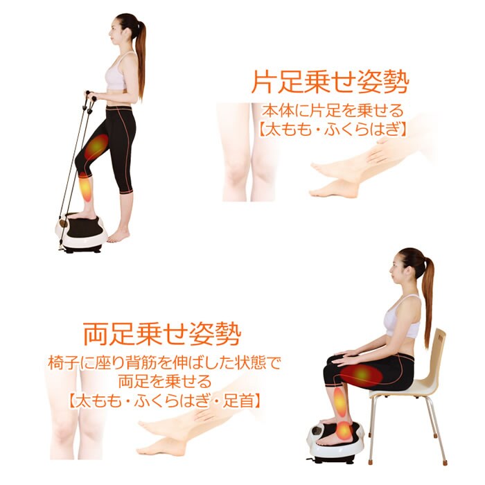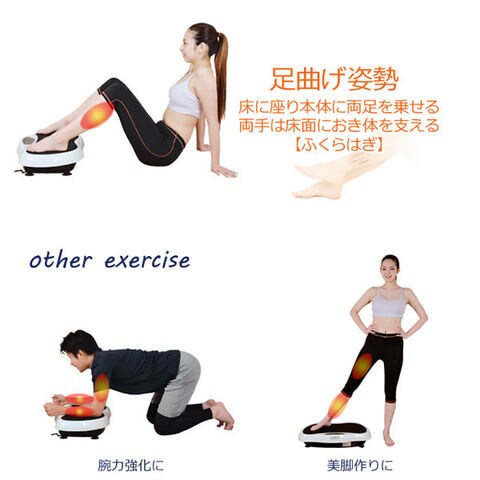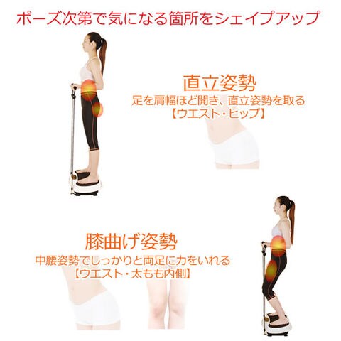 上下左右に小刻みに振動するマシンに乗って立つだけで、普段使っていない筋肉を刺激して筋トレ、有酸素運動、バランス運動、が同時にできるフィットネスマシン。