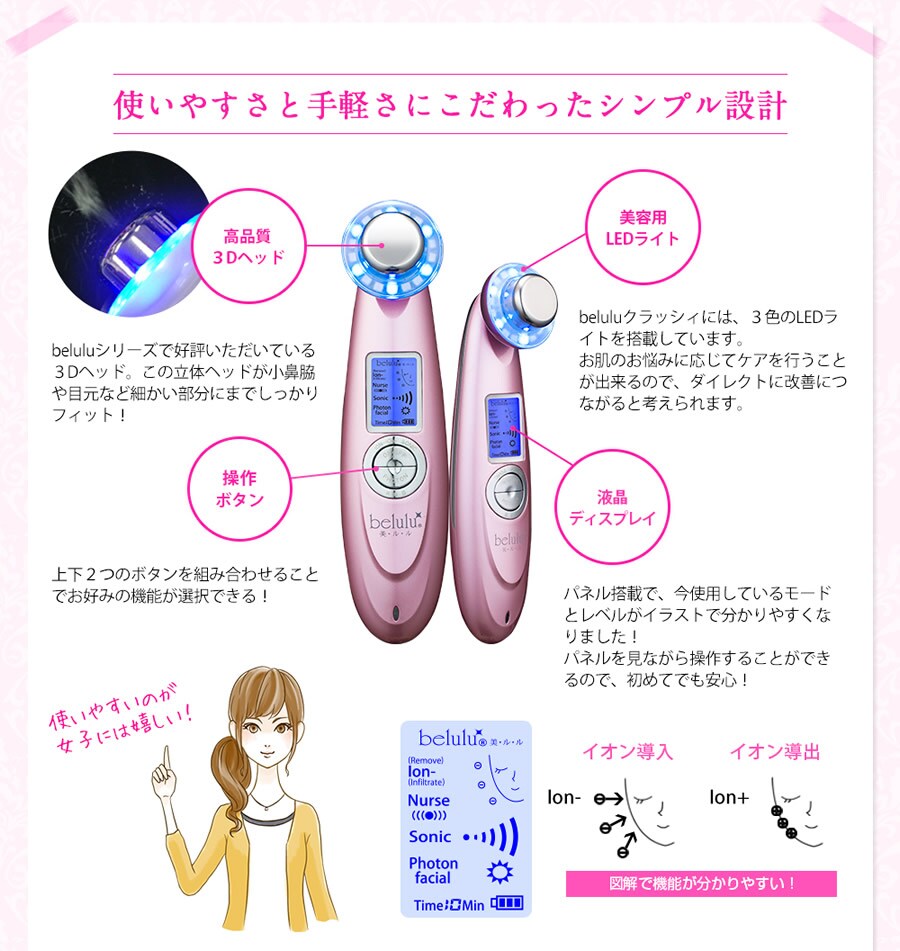 美ルル クラッシィ 美ルル専用美容液付き 美顔器 belulu classy 超音波 イオン導入 イオン導出 光エステ LED クレンジング 毛穴ケア