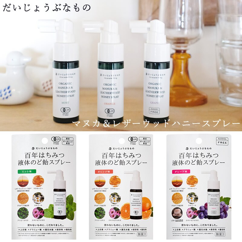 だいじょうぶなもの マヌカ&レザーウッドハニースプレー 25ml マヌカハニー+カモミールスプレー のどスプレー オーガニック マヌカハニー はちみつ ハチミツ
