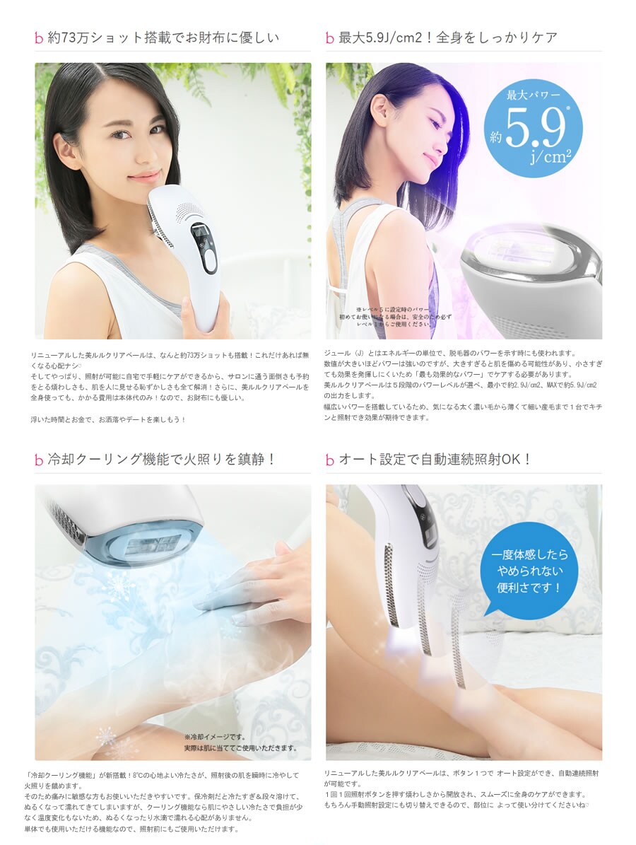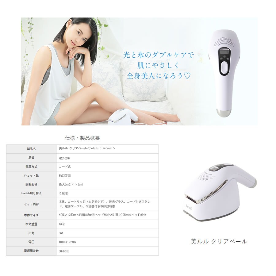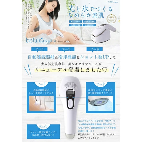 美ルル クリアベール 冷却機能 オート 連射 脱毛機 光 美容器 除毛器 ムダ毛 Vライン ヒゲ IPL belulu Clear Veil