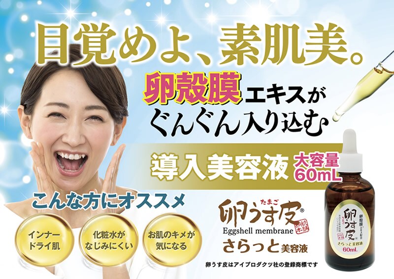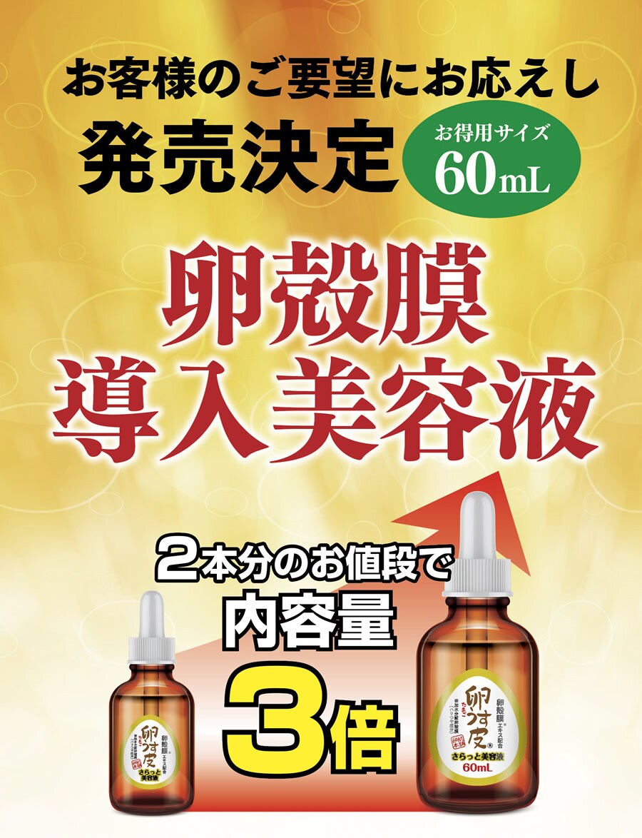 【内容量3倍のお得用】卵肌本舗 卵うす皮さらっと美容液 60ml 2本セット 卵殻膜 らんかくまく プロテオグリカン III型コラーゲン シスチン