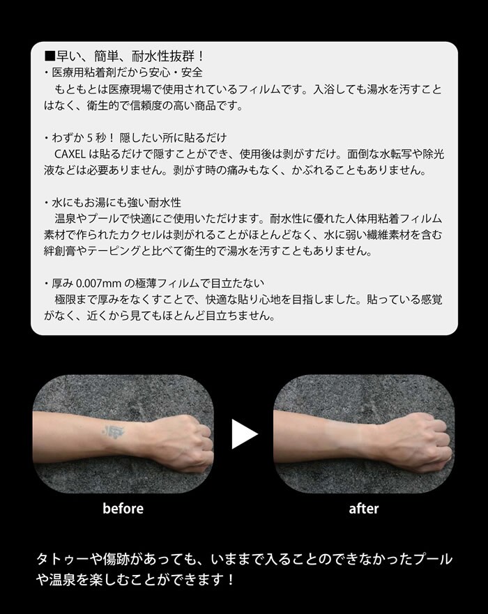 CAXEL カクセル シール miniサイズ 5枚入り タトゥー 隠し 医療用粘着剤シール TAT 刺青 TATTOO 温泉 プール 海 極薄フィルム キズ隠し アザ隠し ミニサイズ