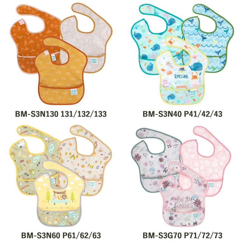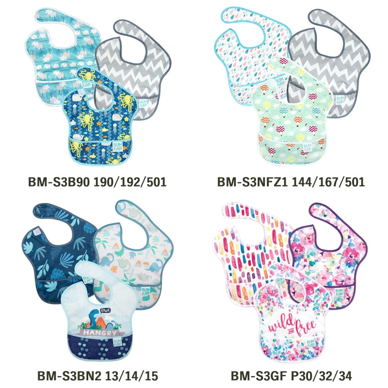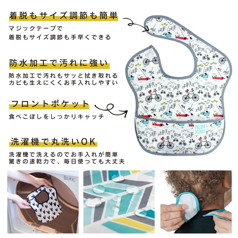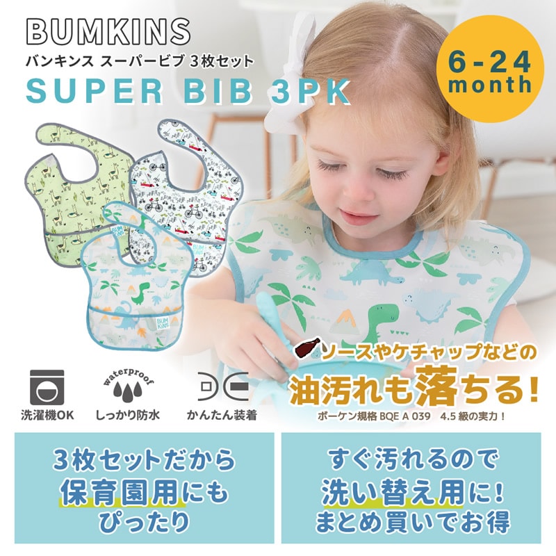 バンキンス スーパービブ 3枚セット (6ヶ月~2歳) 赤ちゃん エプロン ビブ 食べこぼし 防水 速乾 洗濯機 乾燥機 お食事 通園 園児 ベビー 可愛い BUMKINS