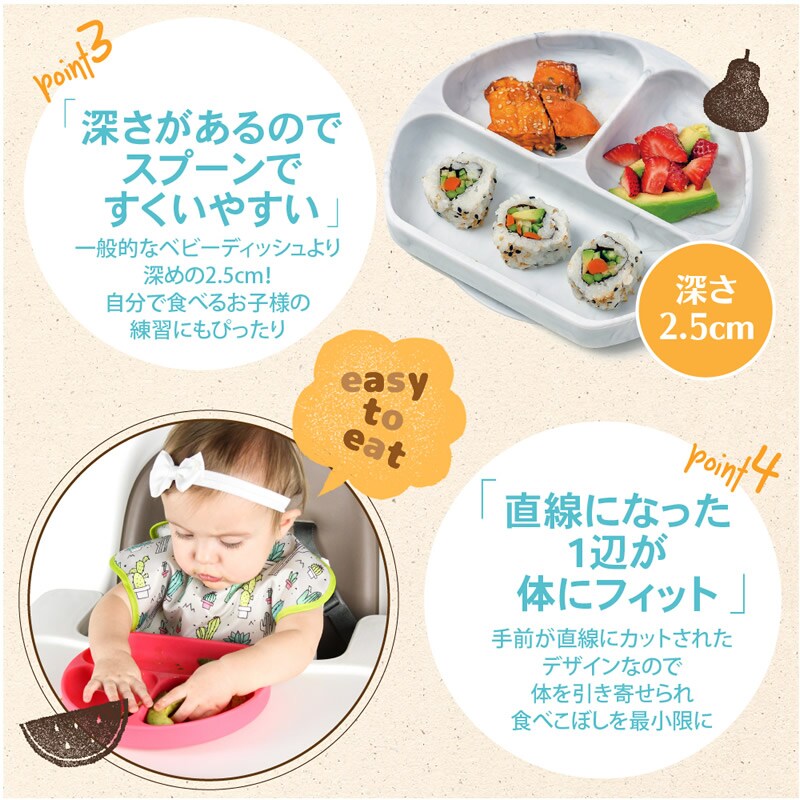 しっかりくっつく吸盤でひっくり返らず、食べ散らかしのイライラ解消にも◎。
