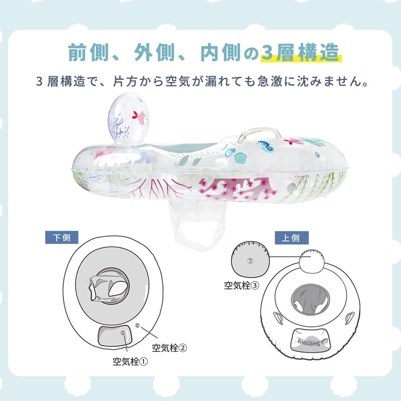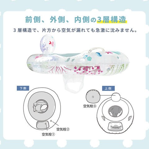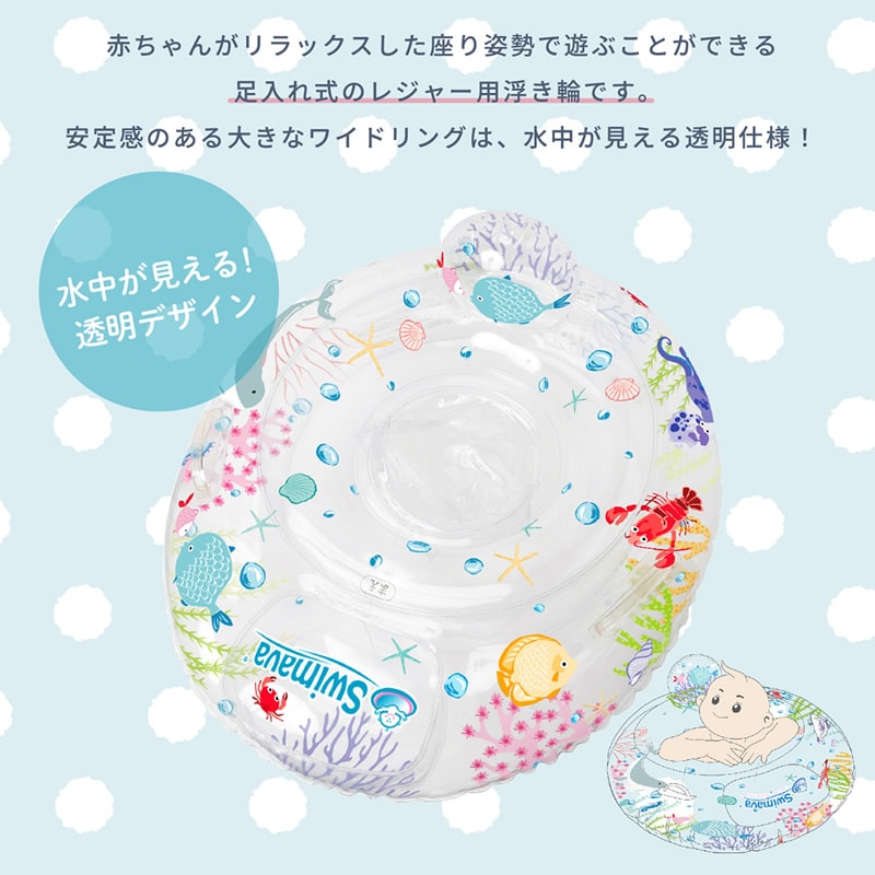 赤ちゃんがリラックスした座り姿勢で遊ぶことができる足入れ式のレジャー用浮き輪です。
