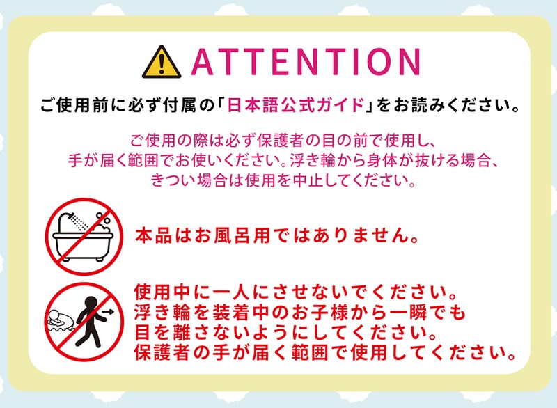 ●浮き輪を装着中のお子様から一瞬でも目を離さないようにしてください。