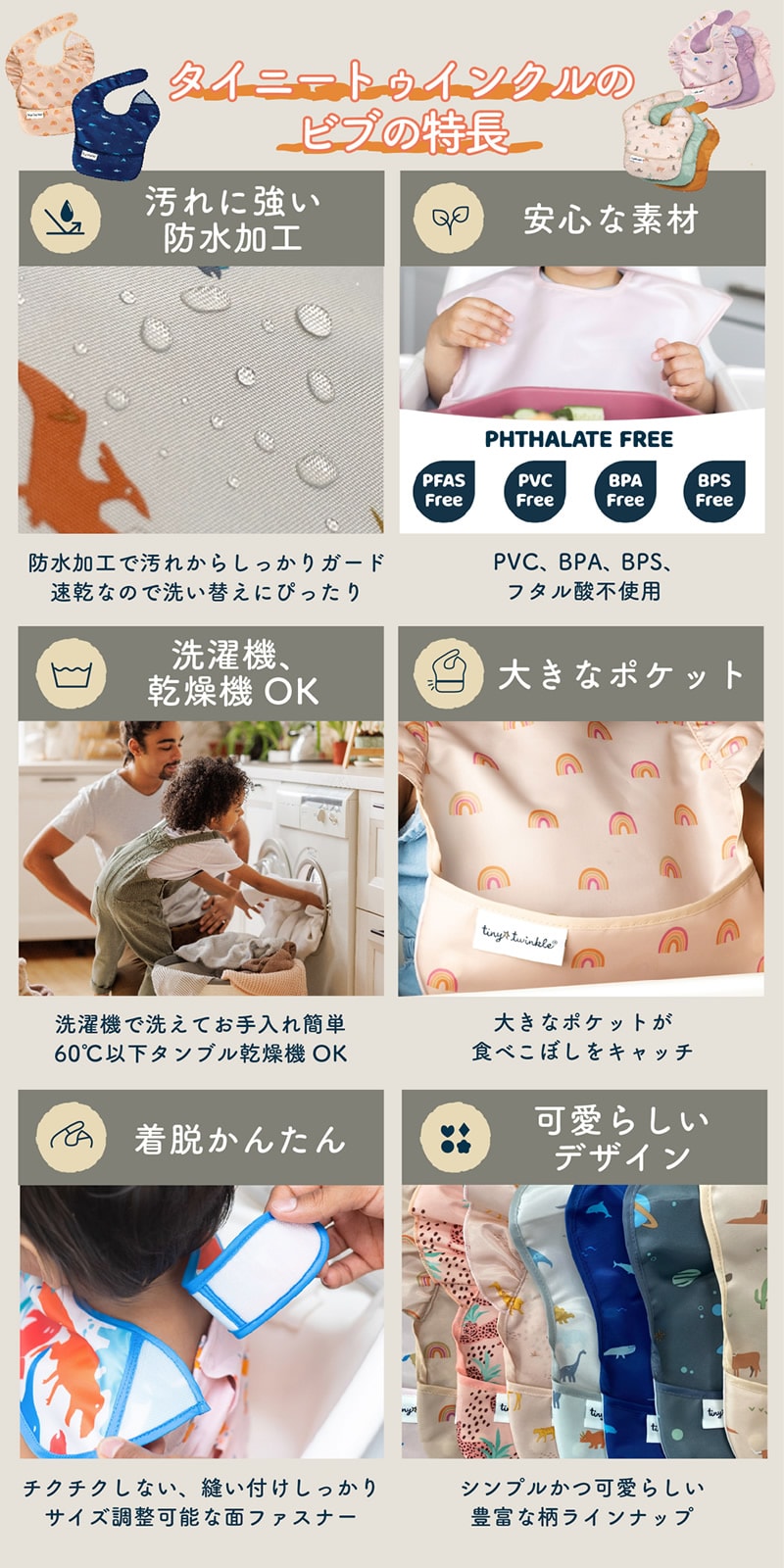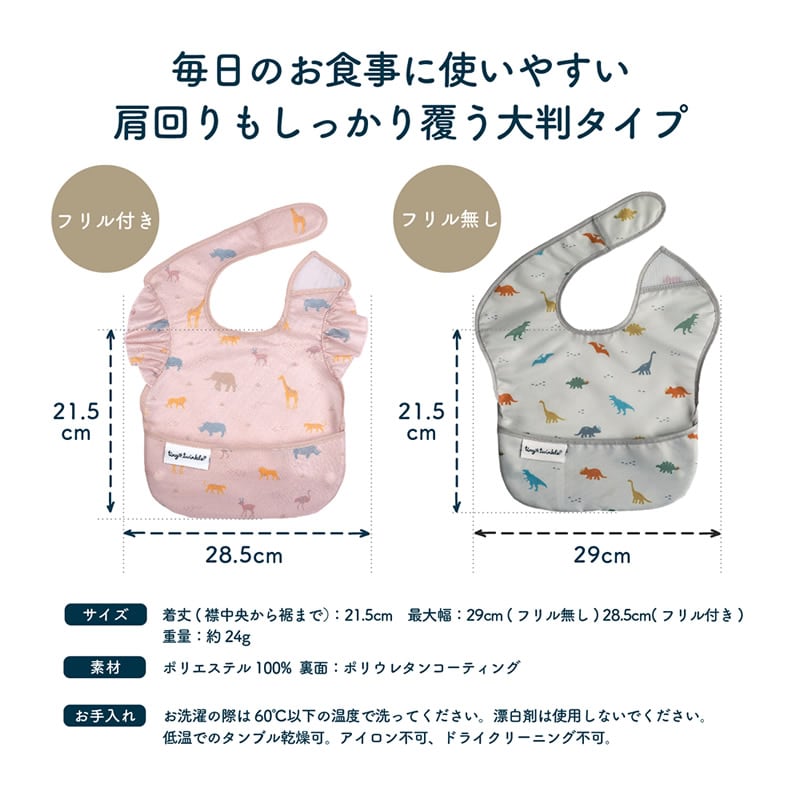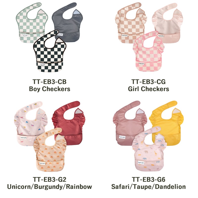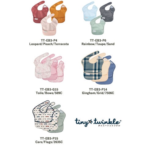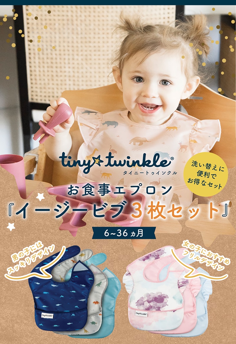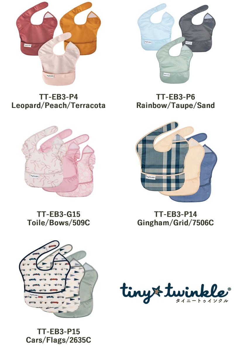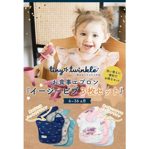 タイニートゥインクル イージービブ 3枚セット 赤ちゃん 食事用エプロン ビブ 食べこぼし よだれかけ 防水 エプロン 速乾 洗濯機 乾燥機 お食事 入園準備 通園
