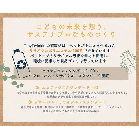 (リサイクルポリエステルを100%使用。エコテックススタンダード100認証済。)