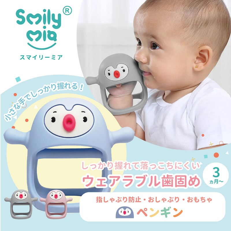 スマイリーミア ウェアラブル歯がため ペンギン 袋パッケージ 歯固め ウェアラブル 落としにくい リスト 手首 シリコン 指しゃぶり防止