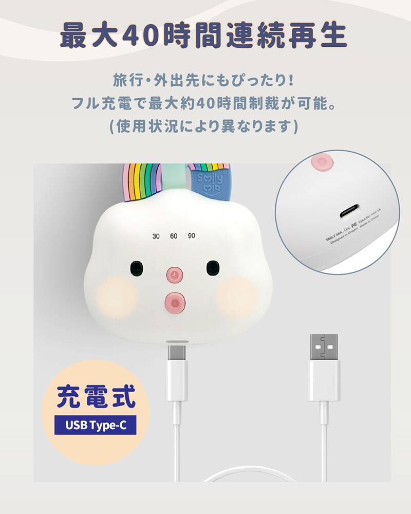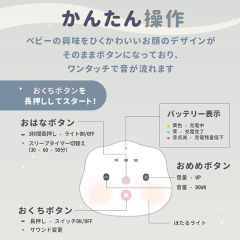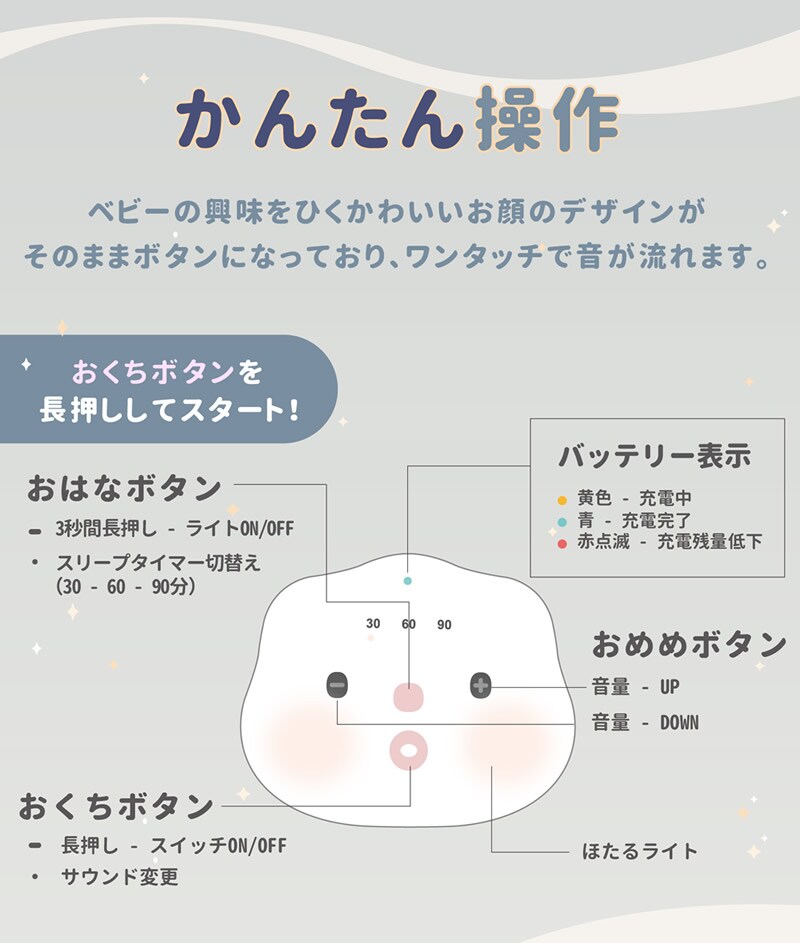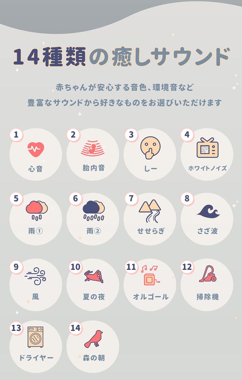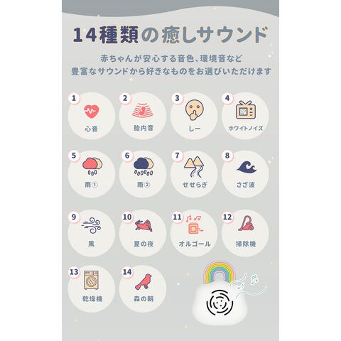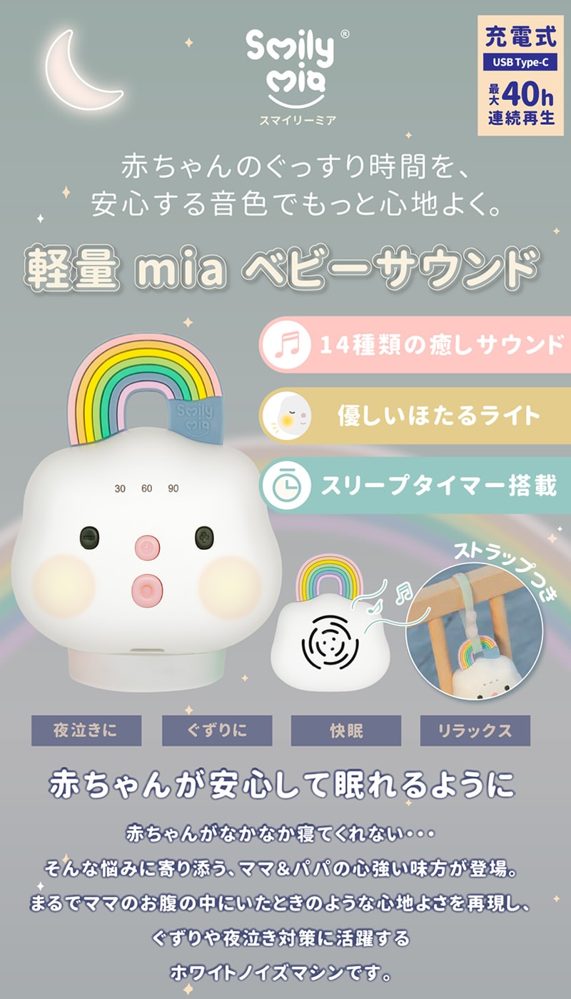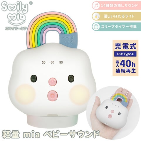 スマイリーミア 軽量 mia ベビーサウンド 赤ちゃん 夜泣き ぐずり 快眠 癒し リラックス ベビーサウンド ホワイトノイズ 胎内音 オルゴール 心音 簡単操作 スリープタイマー 充電式