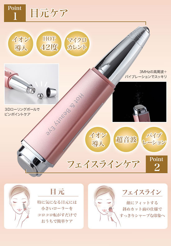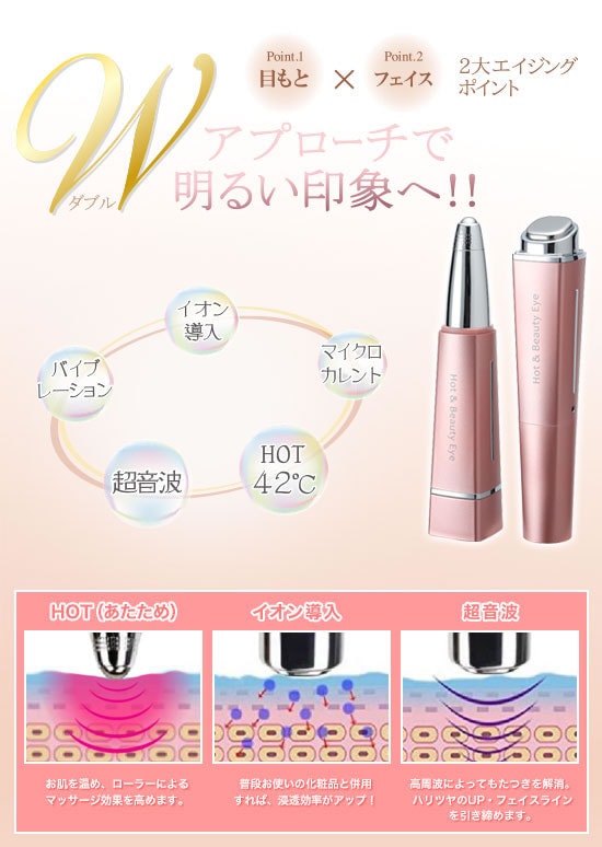 ホット&ビューティーアイ BP-HBI01 Hot & Beauty Eye 目もとローラー フェイスローラー イオン導入 複合 超音波 振動 美顔器