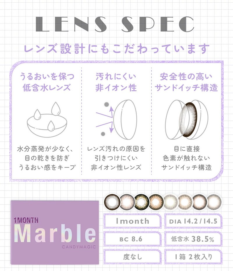 カラコン 度なし マーブル マンスリー 1箱2枚 1ヶ月 1month 14.2mm 14.5mm KAREN 石川翔鈴 Marble