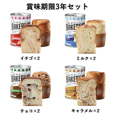 イチゴ/ミルク/チョコ/キャラメル: 製造日より約3年(缶底に記載)