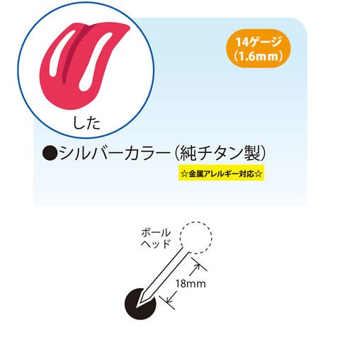 セイフティピアッサー 舌用 純チタン 金属アレルギー対応 14G 1.6mm 18mm ピアス 舌ピアス ボディピアス 14ゲージ ピアッサー 舌 した