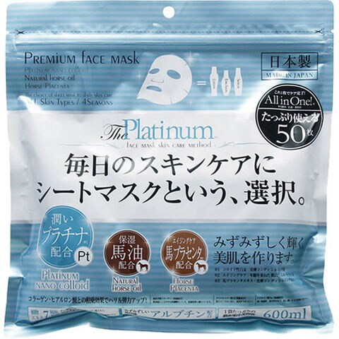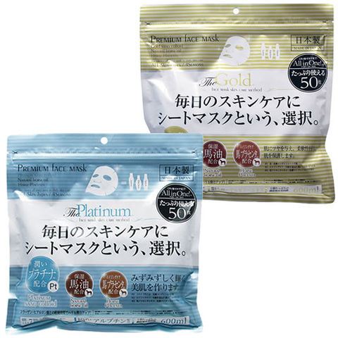 プレミアムフェイスマスク 50枚 フェイスケア パック プラチナ ゴールド 化粧水 乳液 美容液