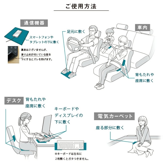 ●肌に直接貼らず布カバー又は生地の上からご使用ください。