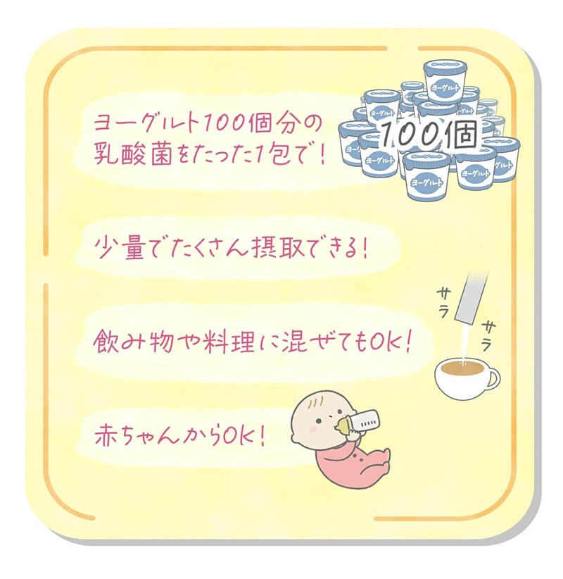 ●小児や高齢者の方で、粉で飲むのが困難な方は、ジュースや味噌汁やゼリーなどに混ぜて飲んでも結構です。