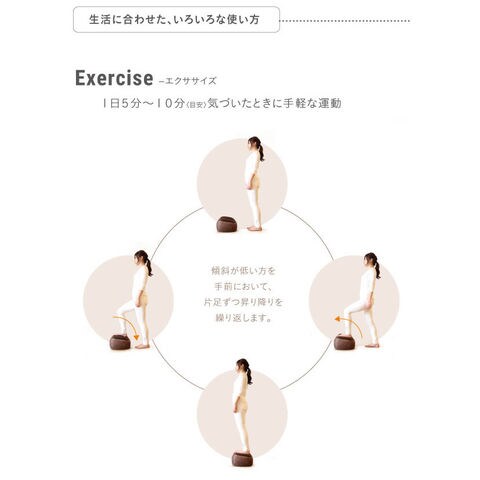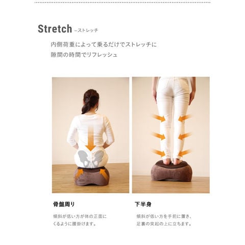 昇降運動とストレッチが手軽にできるうえ、骨盤クッションとしても使用可能。
