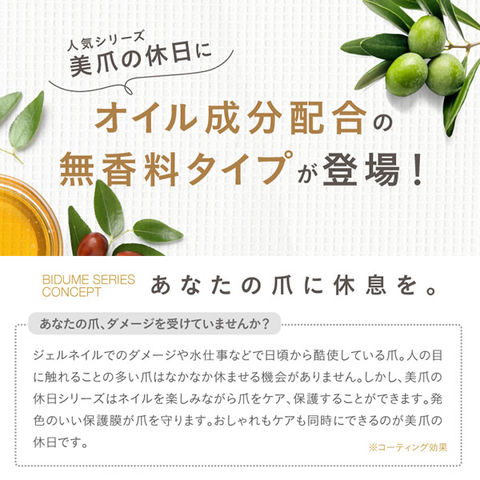 オイルを3種類配合したことでダメージ爪に潤いを与えて補修(コーティング効果)。
