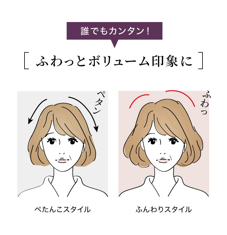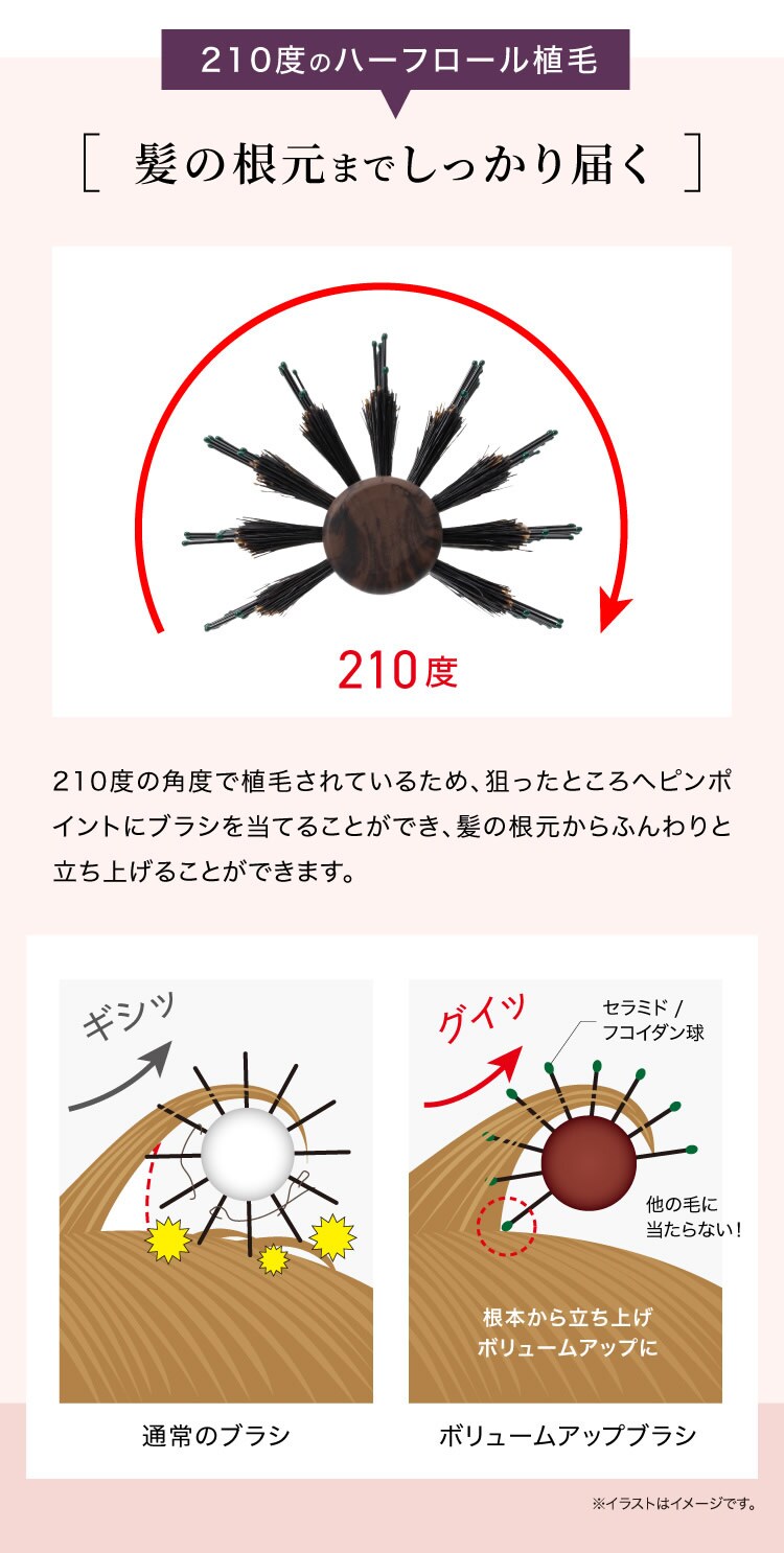 短い毛から長い毛までしっかりとキャッチし立ち上げることで、ふんわり感を演出します。