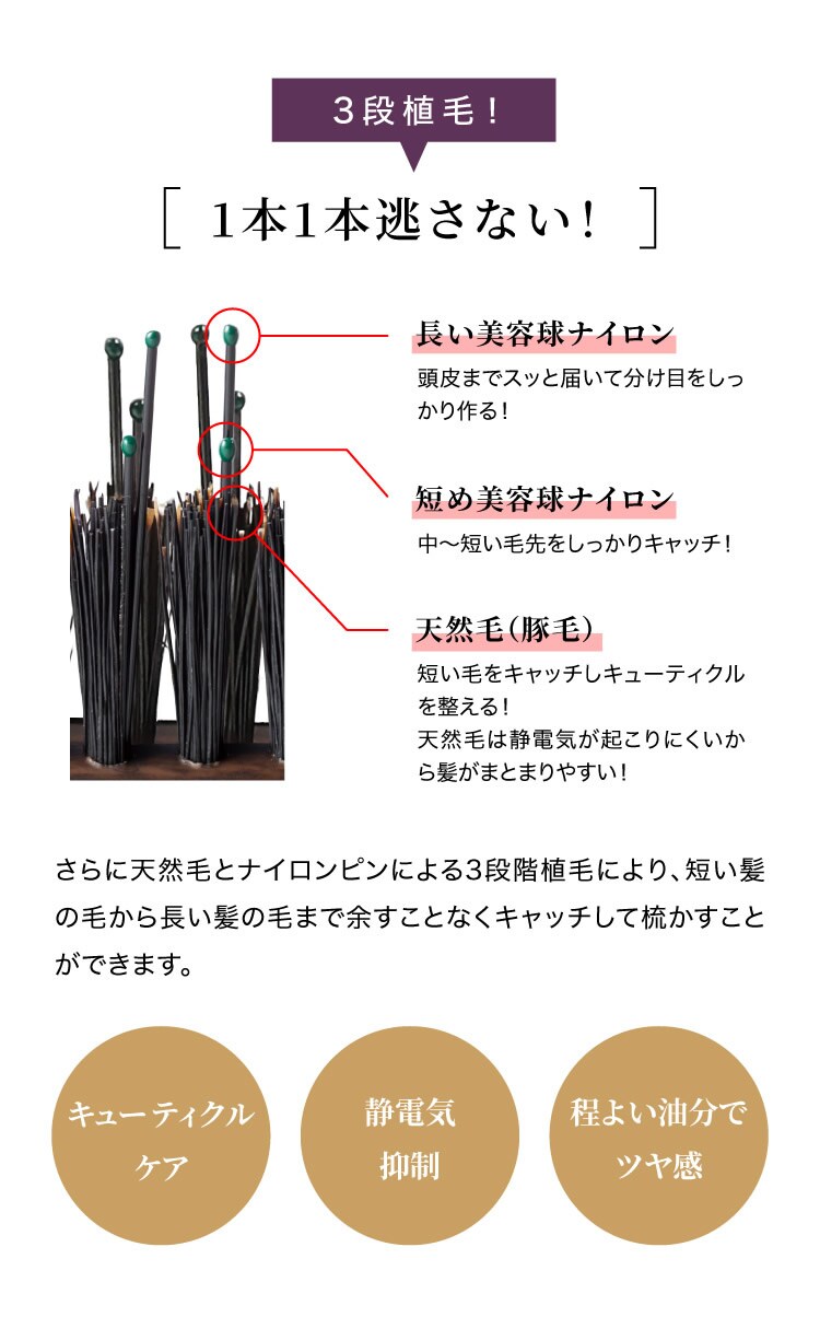 秘密は210度の範囲で3段階に植毛されたブラシの構造にあります。