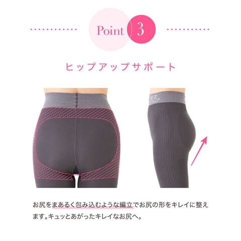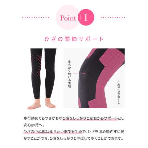 ・ヒップ、ひざ、ふくらはぎの3ヶ所の編地ポイントでポスチャーウォーキングが目指せる!