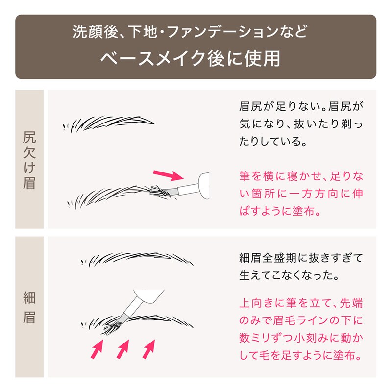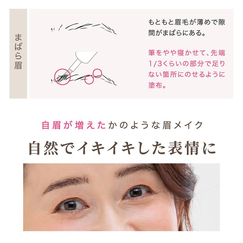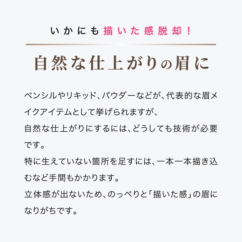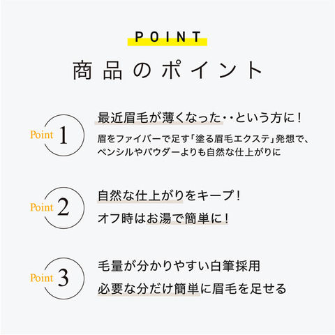たっぷりのファイバーを直接、眉毛の足りない部分に塗るだけで、生えているかのような自然な眉毛に仕上げられます。