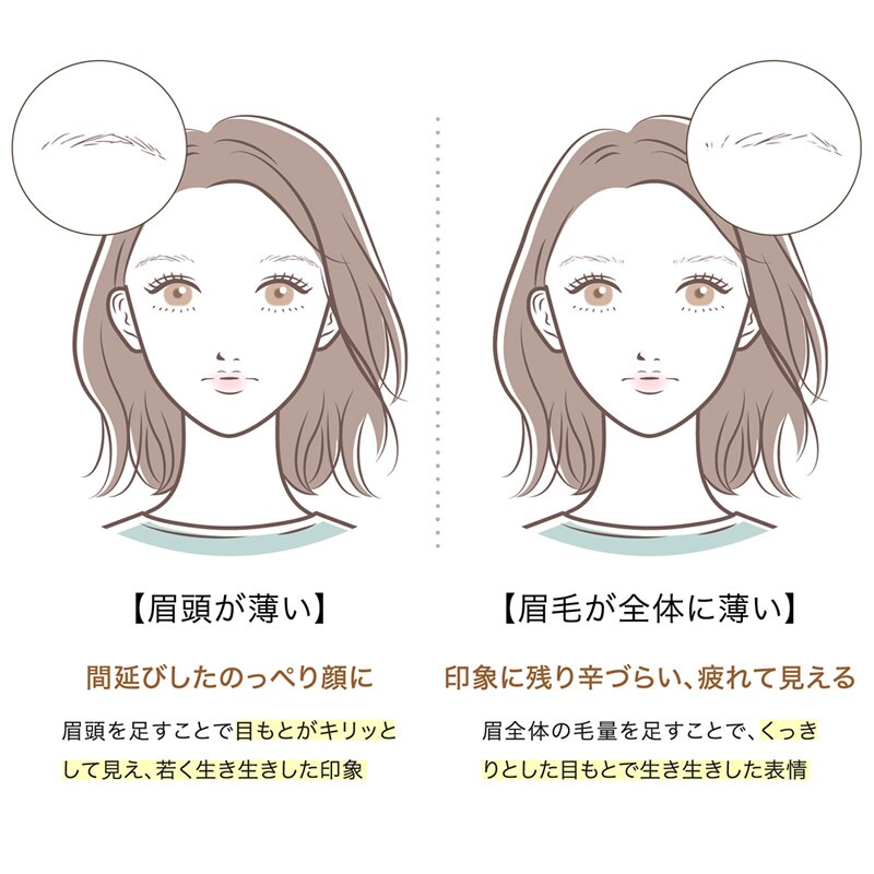 眉毛が生えていない場所に付け足すようにペンなどで書いてもどうしてものっぺり老け印象になりがち。