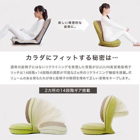 背筋がGUUUN 美姿勢座椅子 リッチ RICH 座椅子 背筋がグーン 骨盤 ストレッチ 下半身 猫背 背筋 横隔膜 歪み リクライニング 在宅 テレワーク 勉強