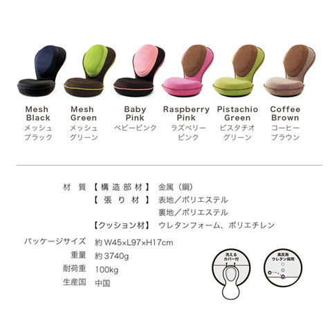 専用カバーは着脱可能で洗濯ができます。背もたれのリクライニングはもちろん、背中クッションがなんと90度に曲がっちゃうんです。