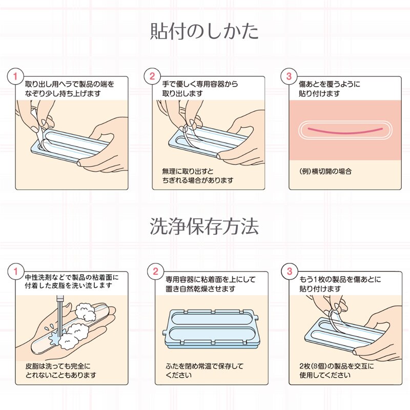 かゆみや痛みを軽減し肥厚性瘢痕・ケロイドを予防できる、手術後のセルフケア専用シートです。
