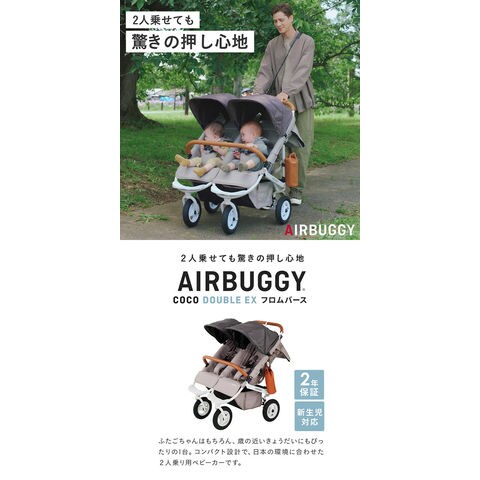 エアバギー ココダブル EX フロムバース ベビーカー 双子用 開閉式フロントバー レインカバー ドリンクホルダー エアポンプ 新生児 双子 兄弟 姉妹 年子 人気 出産祝い プレゼント ギフト AIRBUGGY COCO DOUBLE EX FROM BIRTH