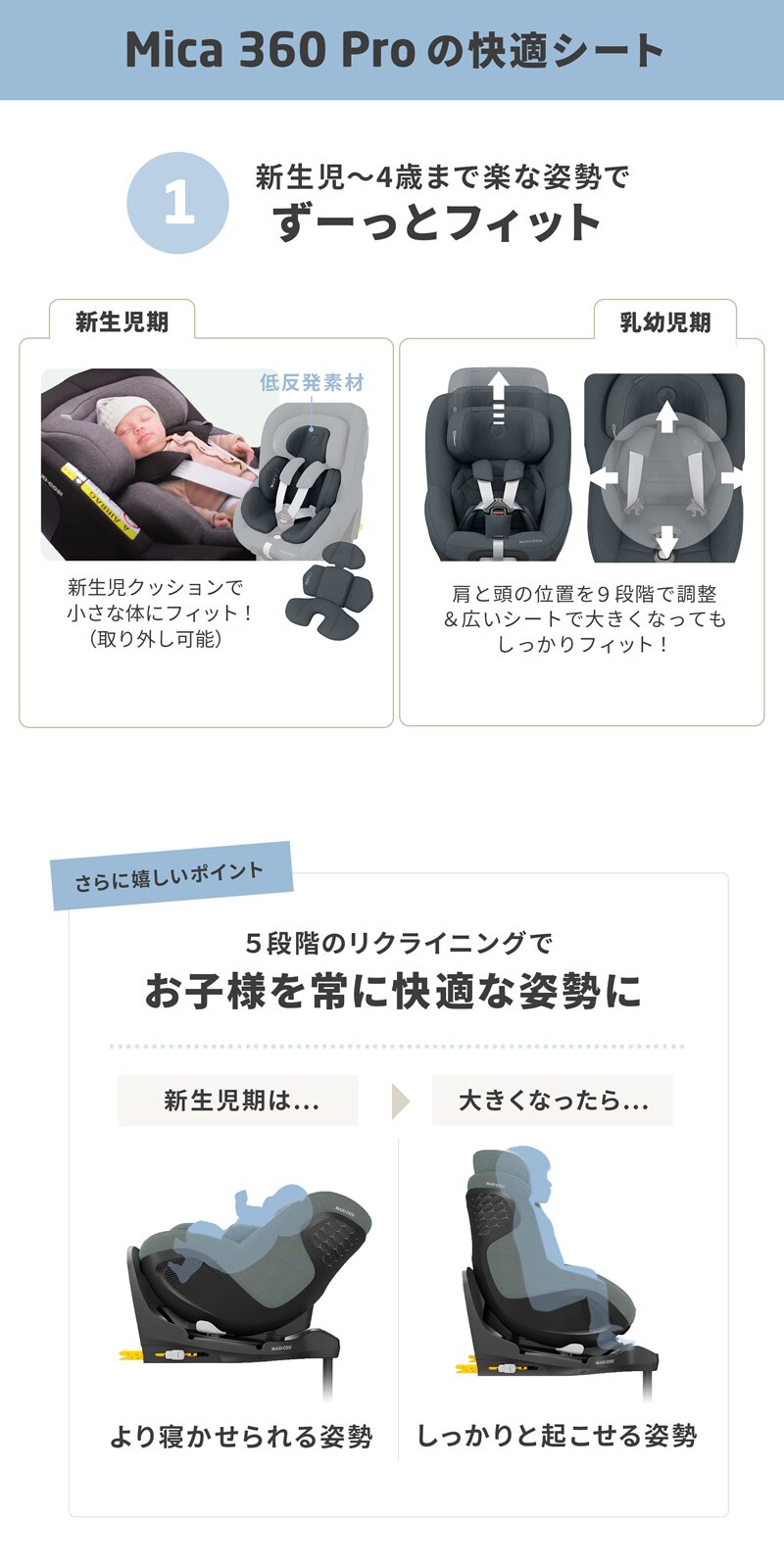【正規販売店/4年保証】マキシコシ マイカ360 プロ ベビーシート チャイルドシート R129適合 新生児 回転式チャイルドシート MaxiCosi Mica 360 Pro エアバギー