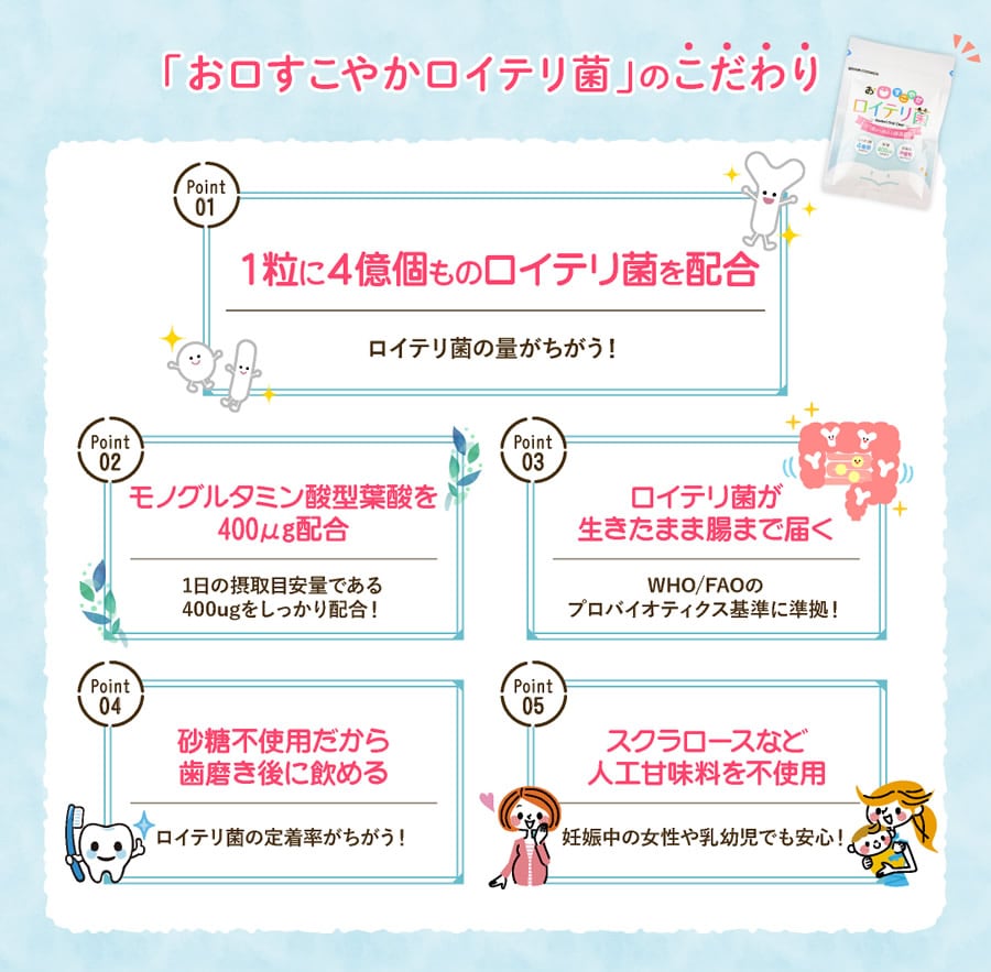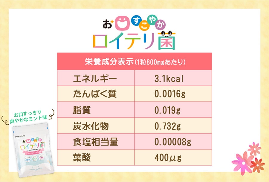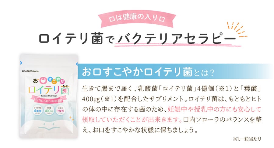 ロイテリ菌 乳酸菌 お口すこやかロイテリ菌 ロイテリ菌 ロイテリ 葉酸 乳酸菌 フローラ 口臭 予防 対策 エチケット サプリメント サプリ