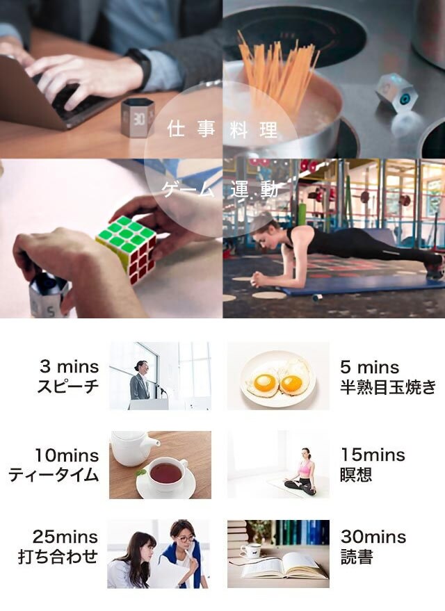 通常のタイマーのボタンのように、開始/停止を操作することではなく、オリジナルなセンサー反応操作で時間のカウントダウンを計ることができます。
