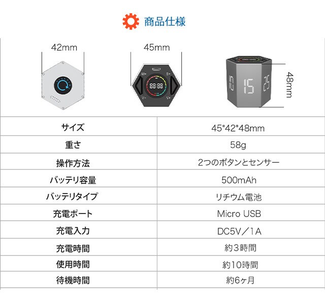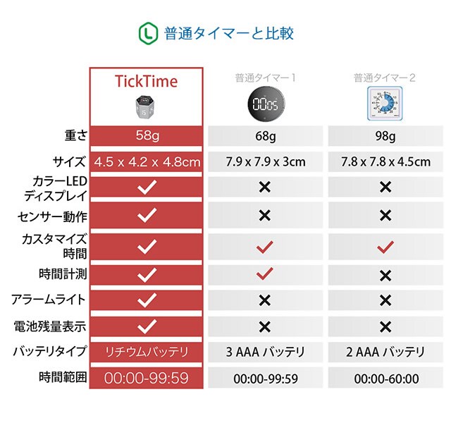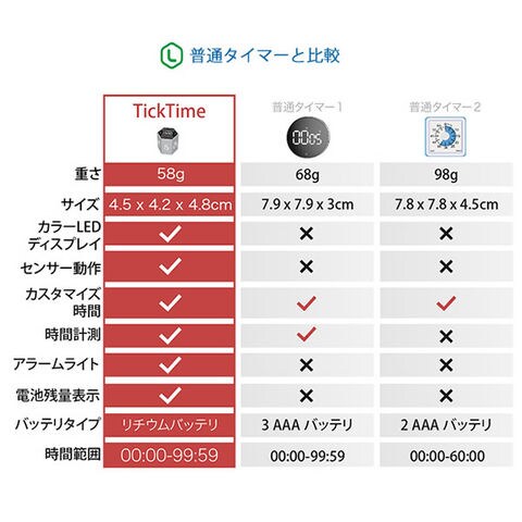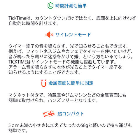 TickTime ティックタイム デジタル タイマー カウントダウン キッチン キューブ 仕事 料理 運動 勉強 会議 在宅ワーク LED コンパクト