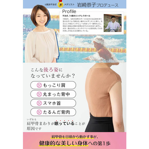 元競泳平泳ぎ金メダリスト岩崎恭子プロデュース。岩崎恭子背面ケア健康メソッドウエア。