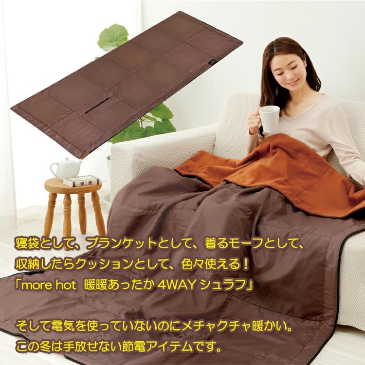 more hot 暖暖あったか4WAYシュラフ 寝袋 着る毛布 節電 保温 蓄熱 ブランケット クッション 防寒 キャンプ 車中泊 防災
