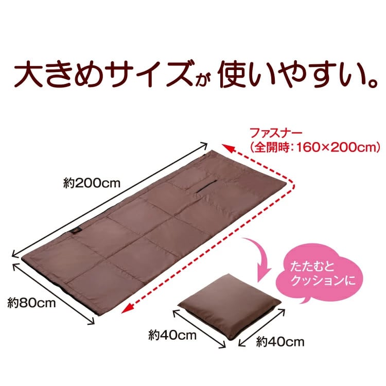 寝袋として、ブランケットとして、着る毛布として、収納してらクッションとして、色々使える!