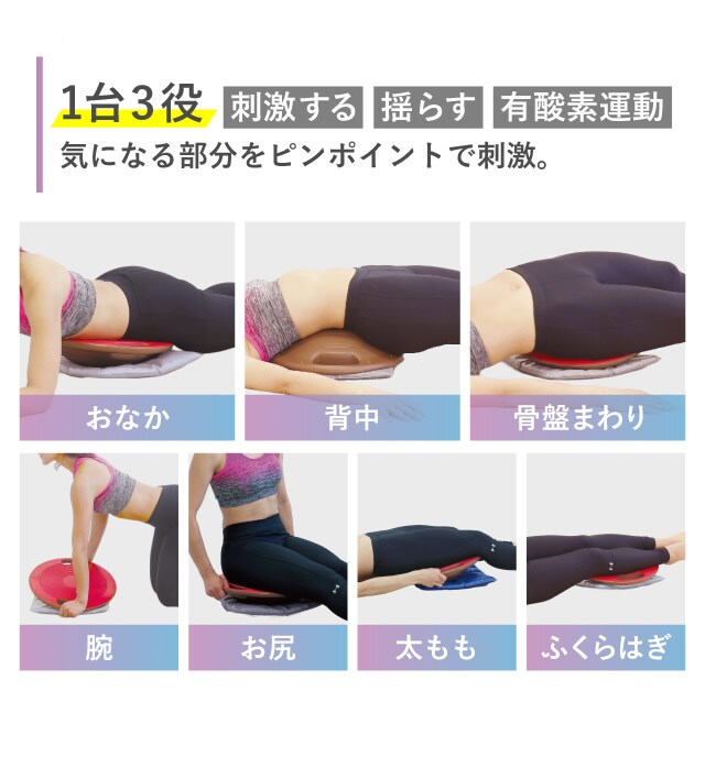 円盤状の本体に乗ることで身体が不安定な状態になると体幹を使いバランスを取ろうとします。このときに筋肉に振動を入れることで効果的な体幹トレーニングが期待できます。
