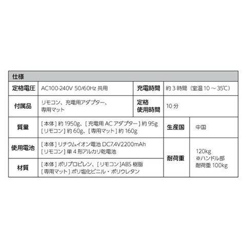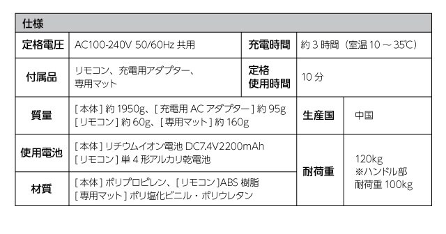 使用電池 本体 リチウムイオン電池 DC7.4V 2200mAh/リモコン 単4形アルカリ乾電池