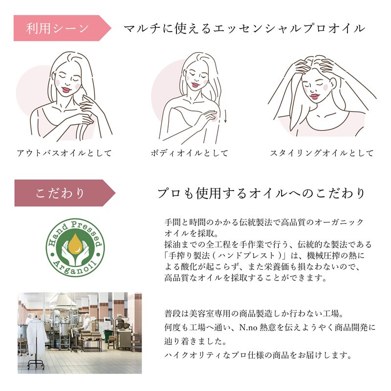 エヌナンバー エッセンシャルプロオイル 100ml ヘアオイル スタイリング剤 オーガニック 日本製 ノンシリコン 天然由来成分100% ヘアケア