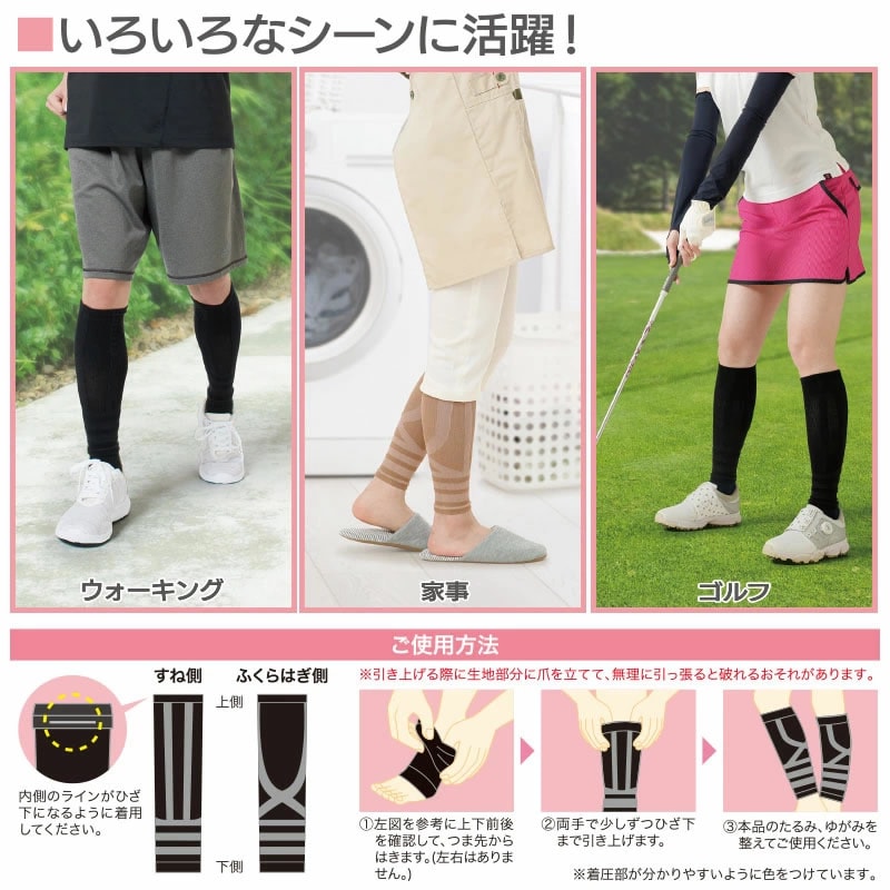 ●ご使用後、着圧のあとが脚に残る場合がありますが、しばらくすると元に戻ります。