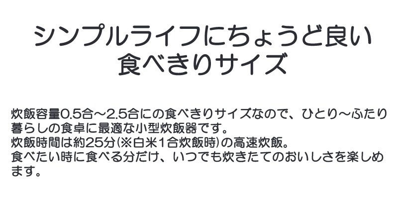 ワンタッチで、すぐに炊きたての美味しさ!約25分の高速炊飯。(※白米1合炊きの場合)