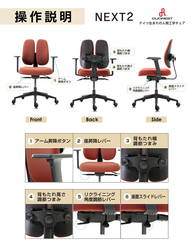 DUOREST デュオレスト NEXT2 正規品 デスクチェア オフィスチェア ビジネスチェア 高機能チェア 椅子 イス ロッキング機能 肘付 アーム付 リクライニング