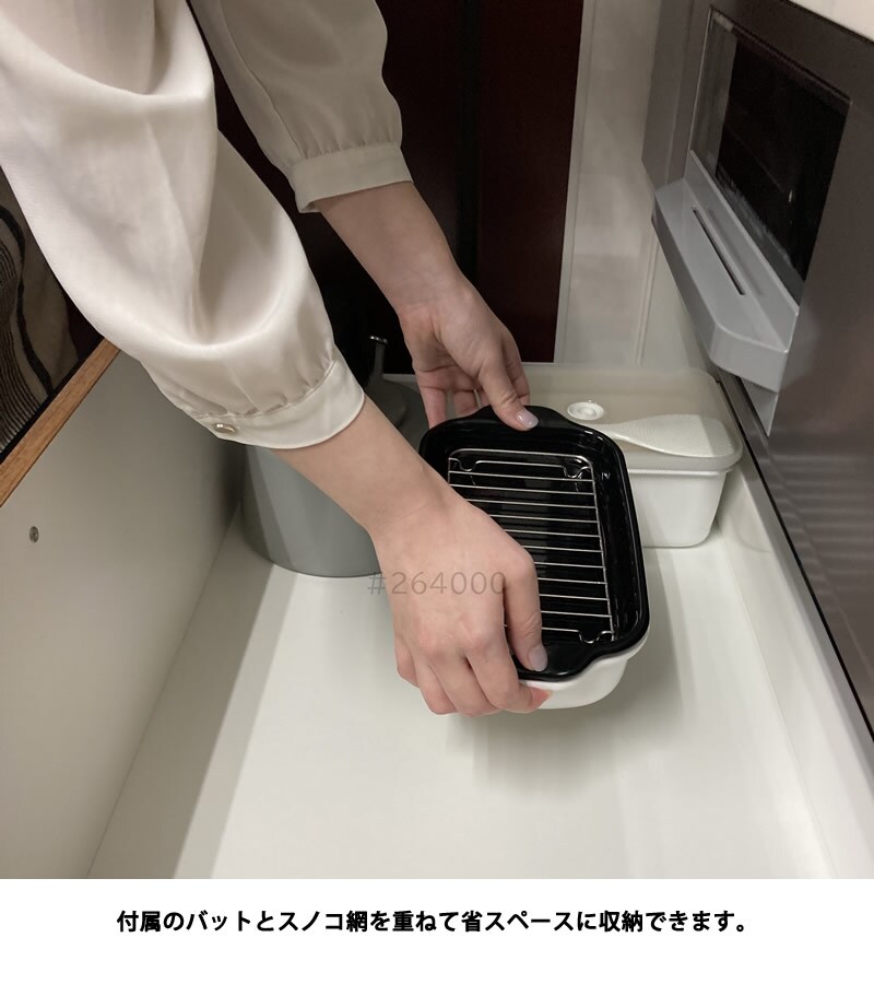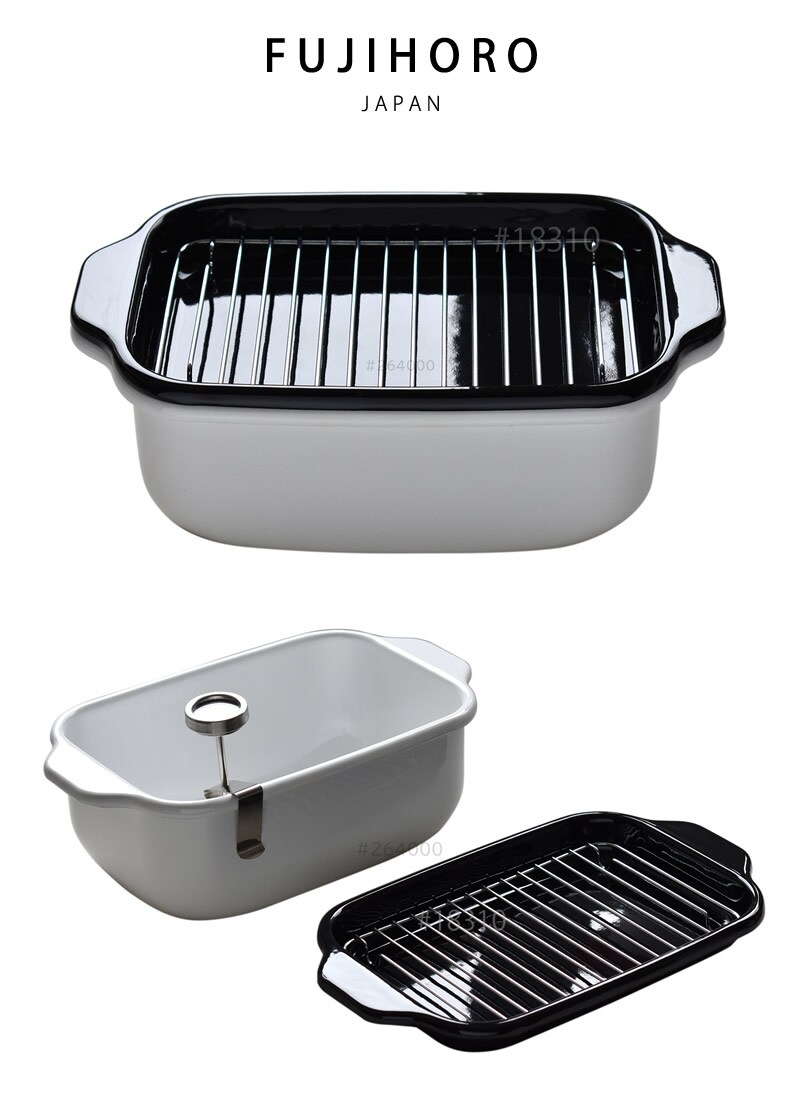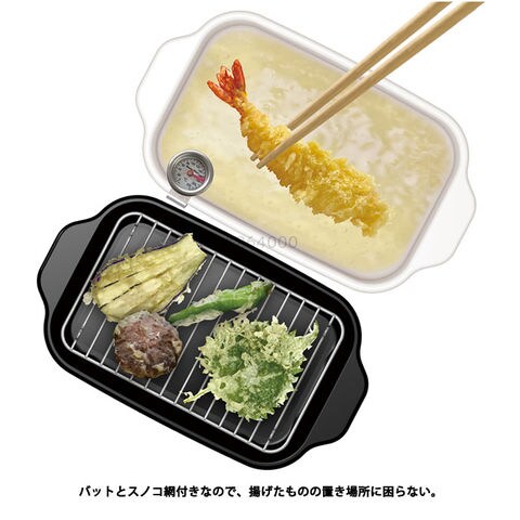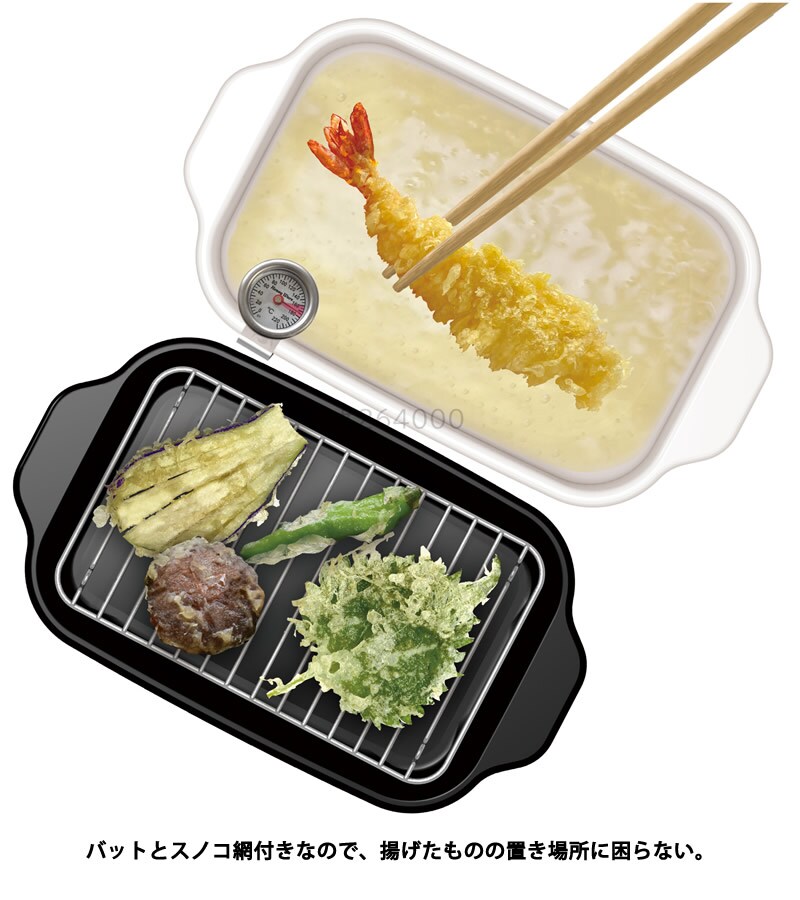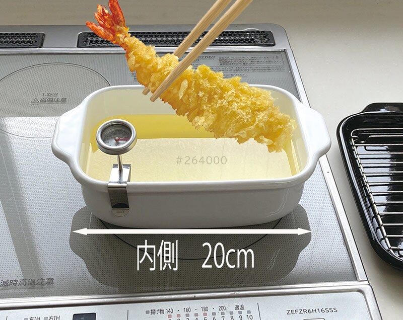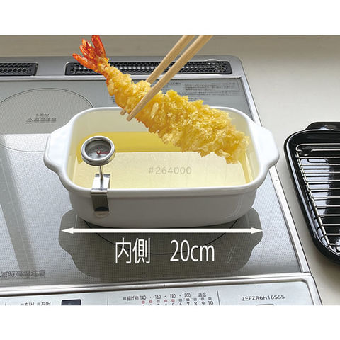 富士ホーロー 角型天ぷら鍋 ホワイト(スノコ・バット・温度計付き)TP-20K.W 揚げ物 鍋 ホーロー 天ぷら鍋 角型 温度計付き