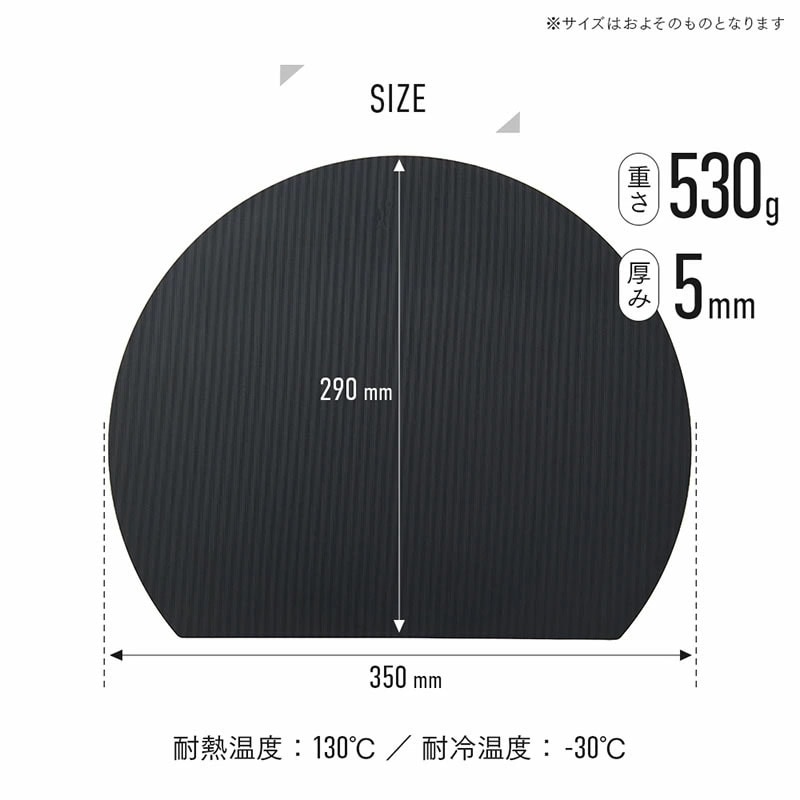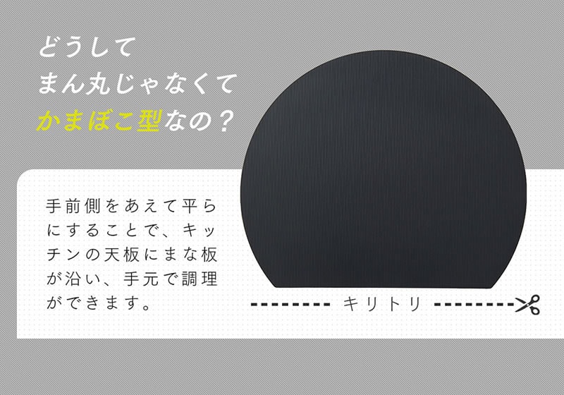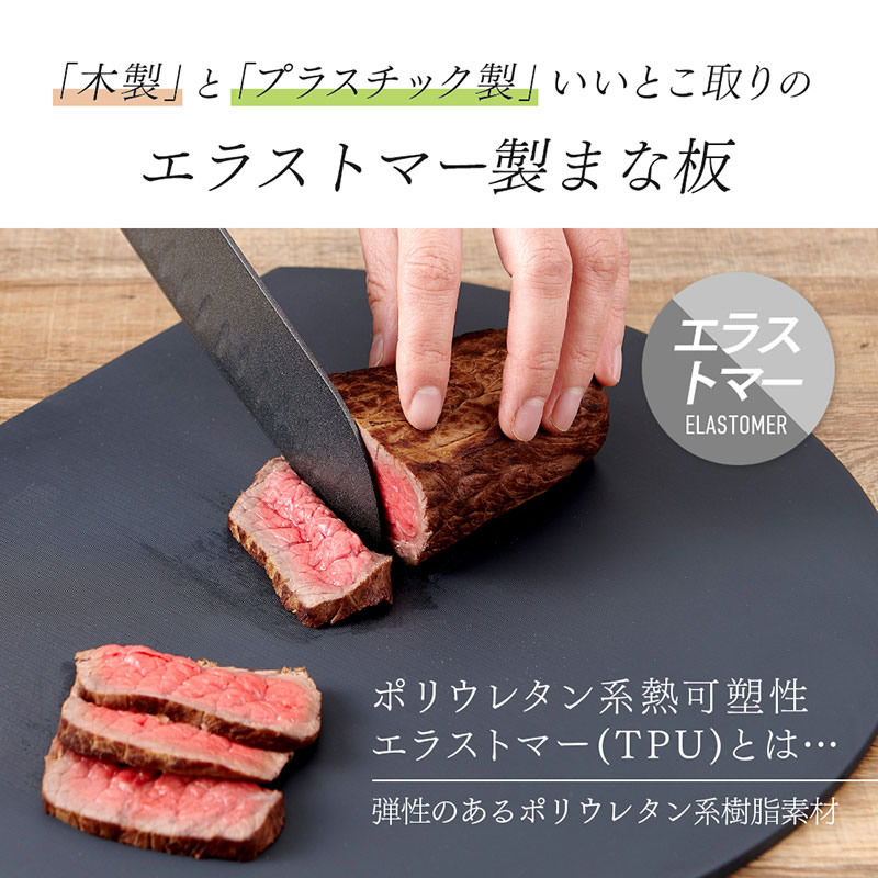刃あたりが柔らかく食材がすべりにくい、弾力性のある耐熱エラストマーまな板。